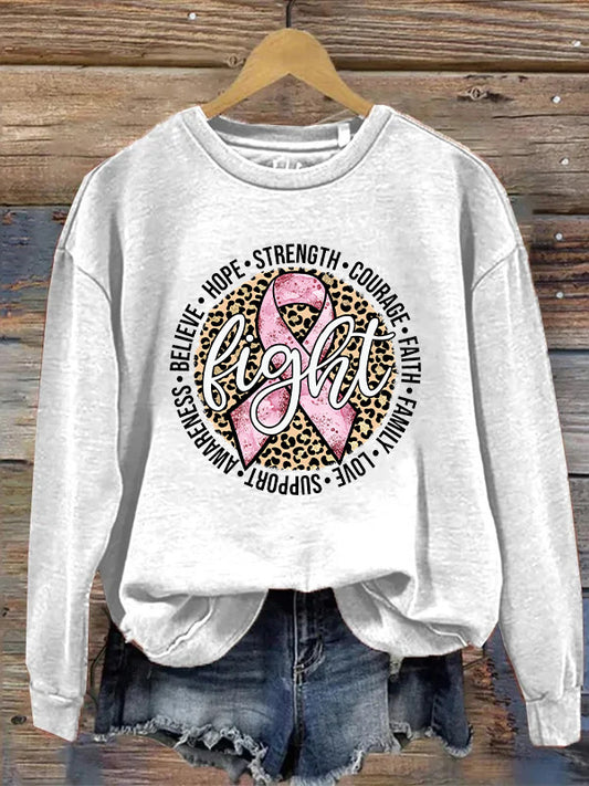 Fight Breast Cancer Pink Ribbon Graphic Cozy Sweatshirt