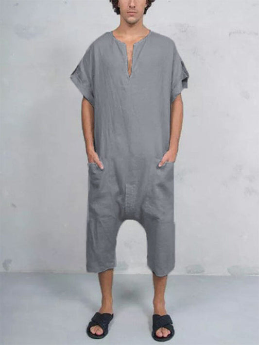 Men's Casual Zipper Neck Cargo Jumpsuit