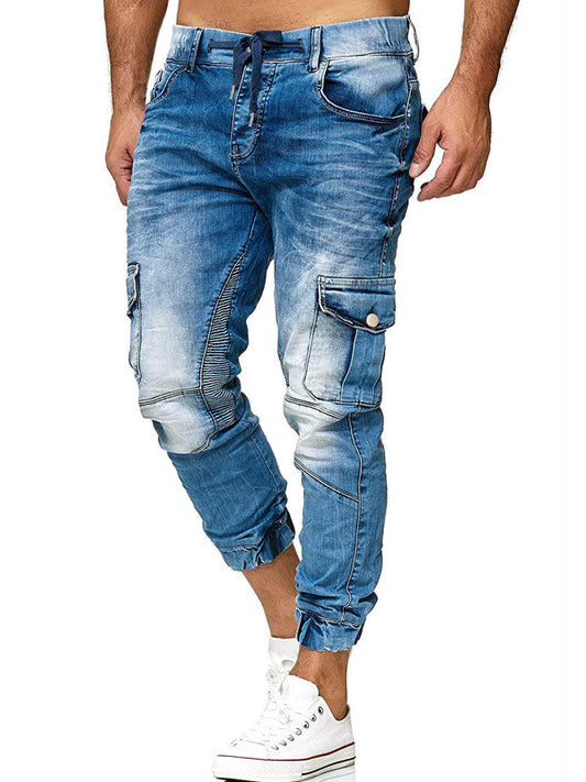 Men‘s Washed Streetwear Pocket Suspender Denim Overalls