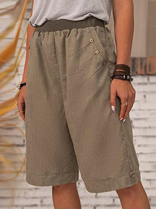 Women's Casual Pants Elastic Waist Straight Pockets Shorts