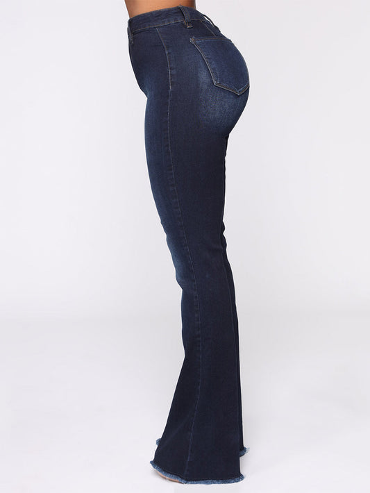 Floral Hand Embroidery Mid Waist Bootcut Jeans