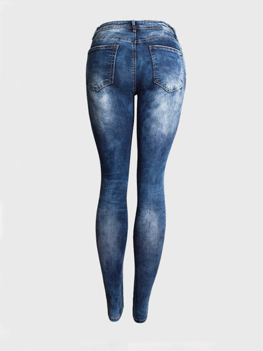 High Rise 5 Buttons Stretch Denim Slim Jeans