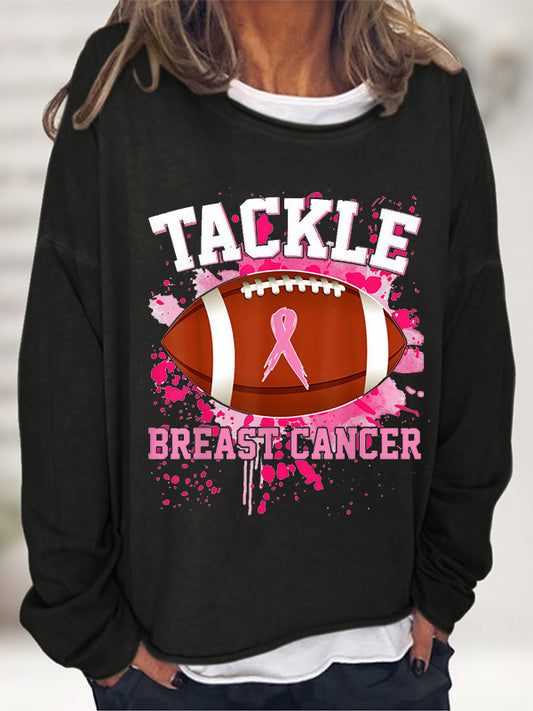 Tackle Football Pink Ribbon Breast Cancer Awareness Long Sleeve T-shirt