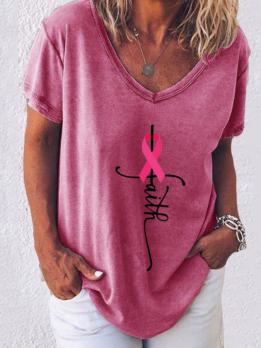 Faith Breast Cancer Awareness V-neck Short Sleeve T-shirt