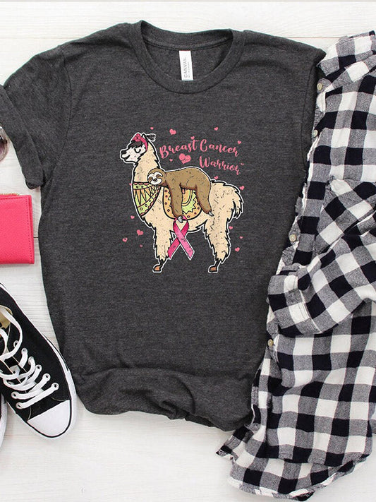 Alpaca Sloth Pink Ribbon Graphic T-Shirt