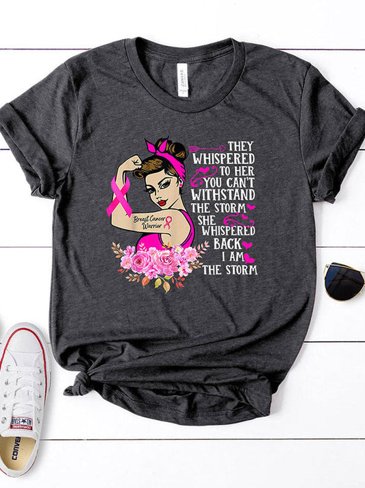 Female Warrior Pink Ribbon Graphic T-Shirt