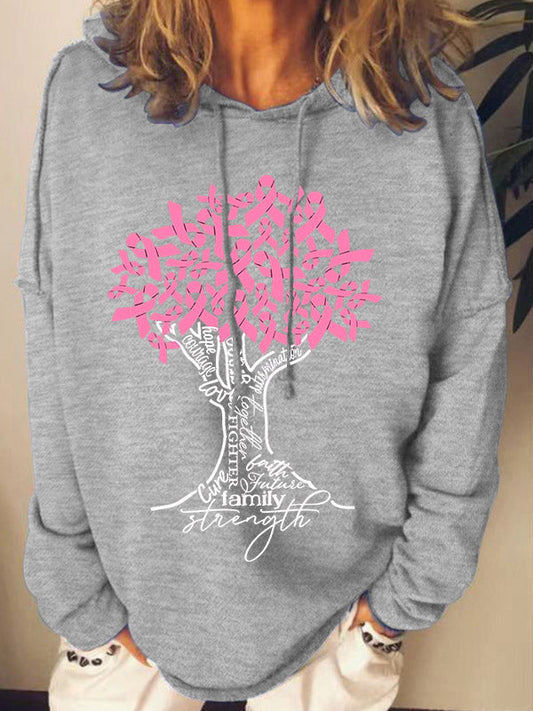41% OFFPink Ribbon Tree Graphic Hoodie