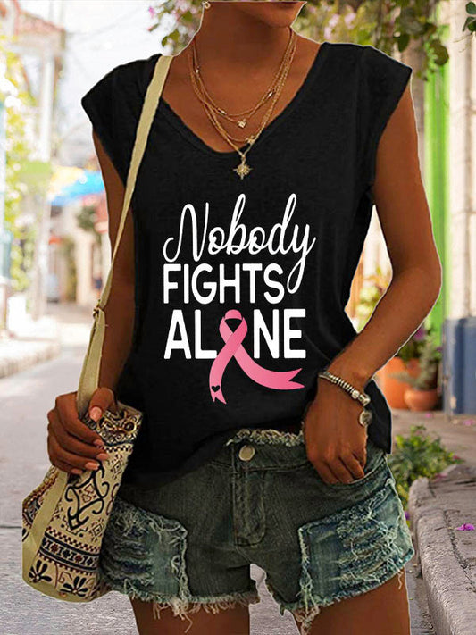 Nobody Fights Alone Print Cap Sleeve T-Shirt