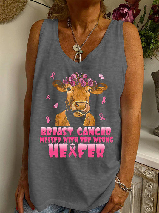 Cow Breast Cancer Messed With The Wrong Heifer V-neck Loose Tank