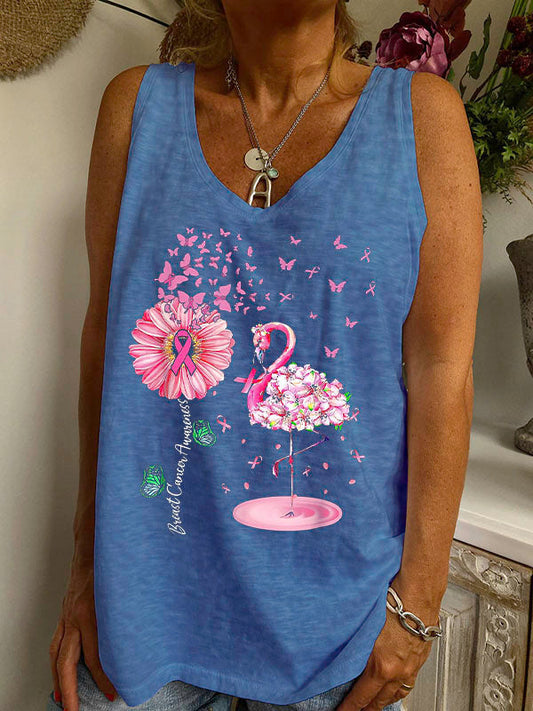 Pink Bird Flamingo Breast Cancer Awareness V-neck Loose Tank