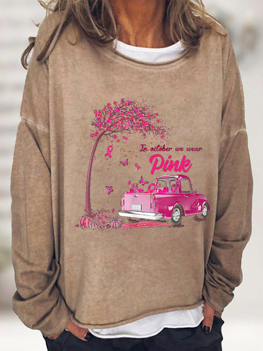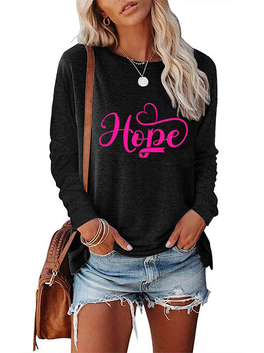 Pink Ribbon Hope Print Long Sleeve T-shirt