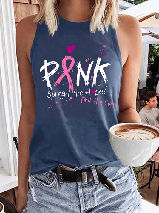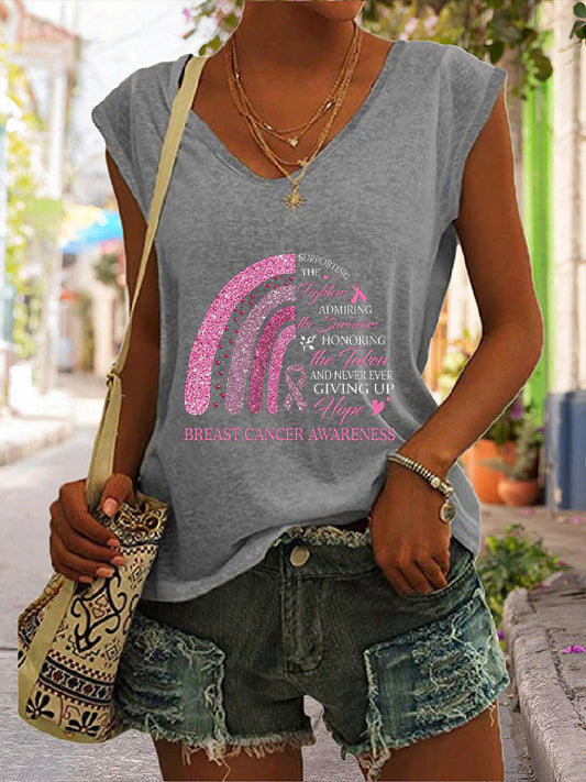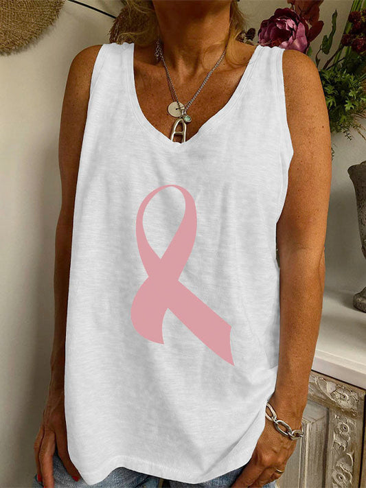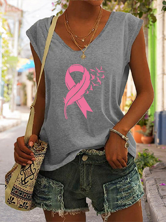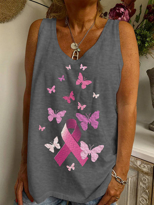 Pink Ribbon And Butterfly Graphic V-neck Loose Tank