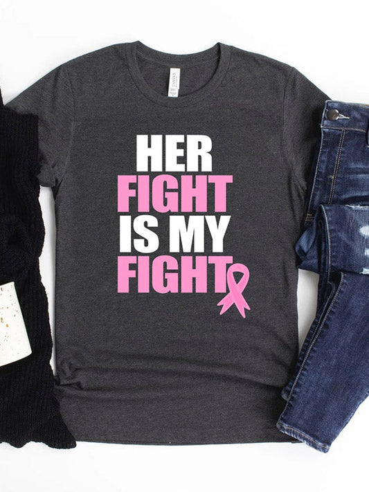 Her Fight Is My Fight Pink Ribbon Print Tee