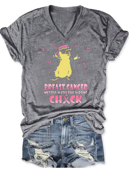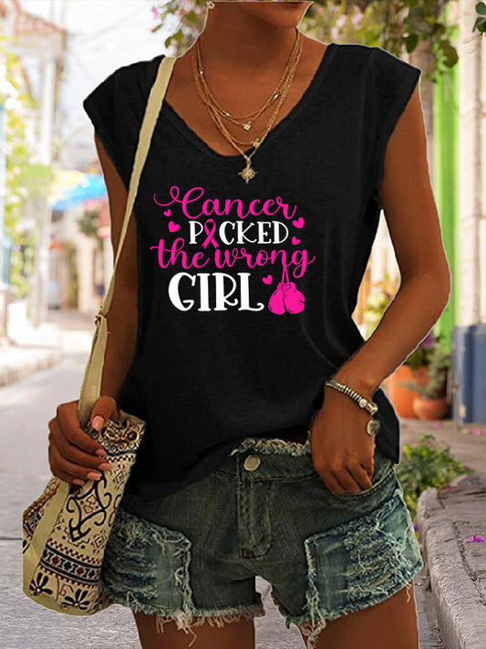 Cancer Picked The Wrong Girl Print V-Neck T-Shirt