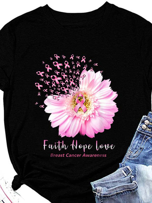 Faith Hope Love Breast Cancer Awareness Graphic Tee
