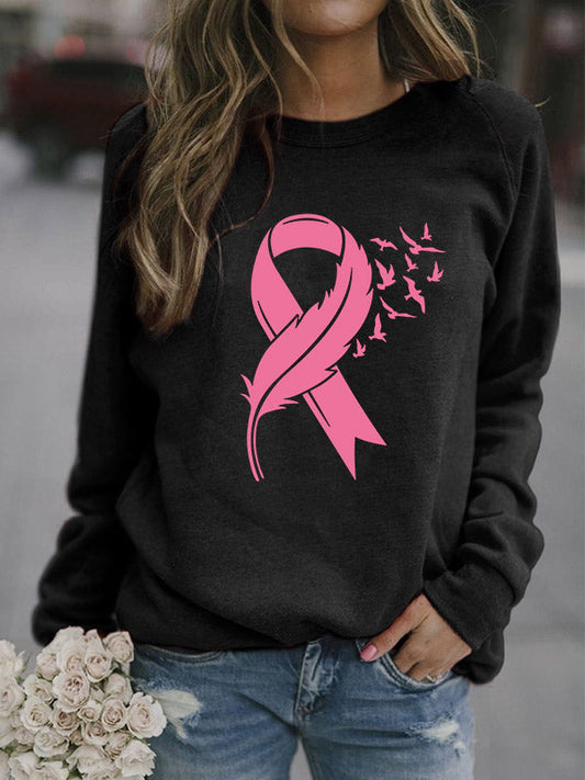 Feather Pink Ribbon Graphic V-Neck T-Shirt