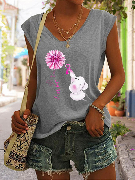 Faith Hope Love Pink Ribbon Elephant Graphic V-Neck T-Shirt