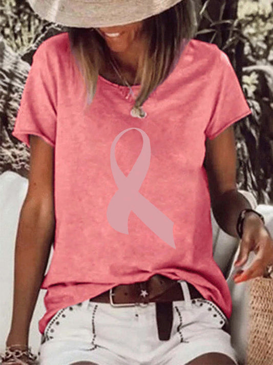 Pink Ribbon Graphic Short Sleeve T-Shirt