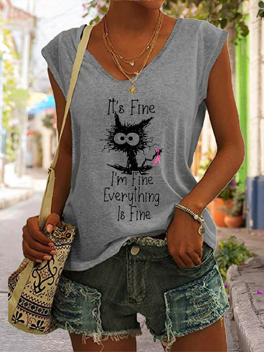 It's Fine I'm Fine Everything Is Fine Pink Ribbon Graphic Cap Sleeve T-Shirt
