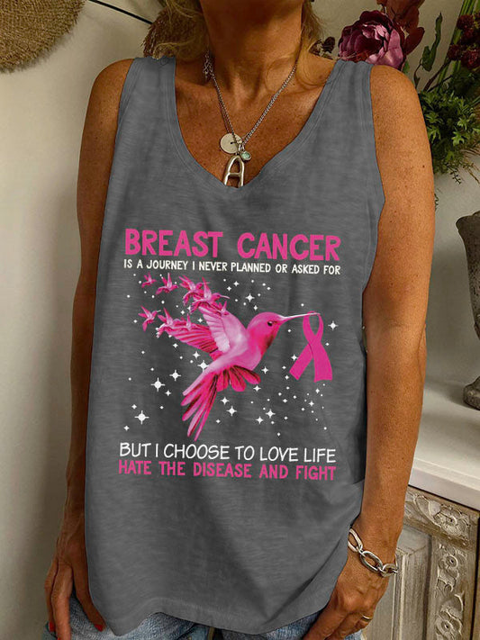 Hummingbird Breast Cancer is a Journey I Never Planned V-neck Loose Tank