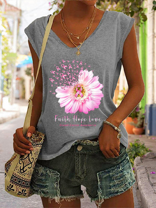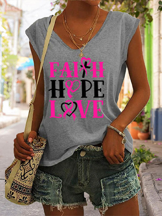 Faith Hope Love Breast Cancer Awareness Graphic Cap Sleeve T-Shirt