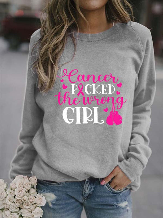 Cancer Picked The Wrong Girl Graphic Sweatshirt