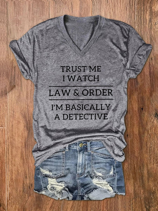 Trust Me I Watch Law & Order I'm Basically A Detective V-Neck T-Shirt