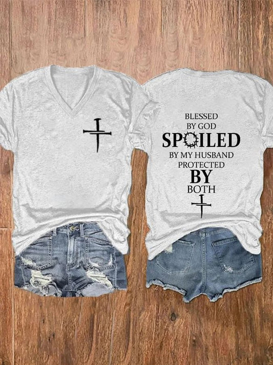 Blessed By God Spoiled By My Husband Protected By Both V-Neck T-Shirt