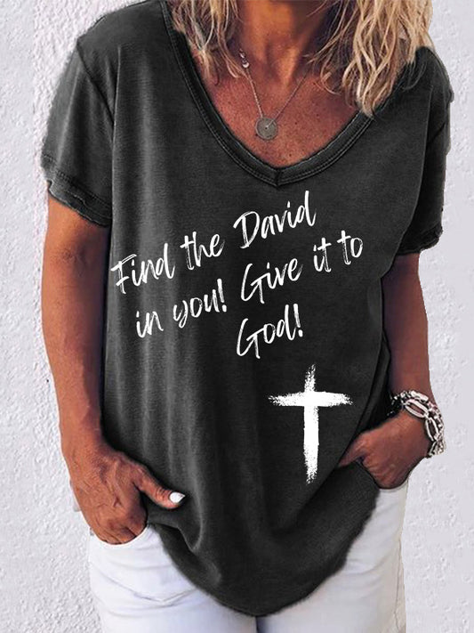 Find the David in You Give it to God V-neck T-shirt