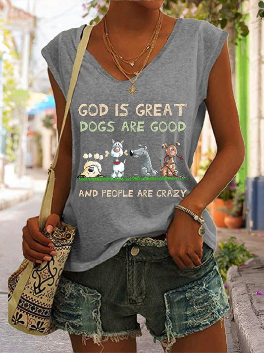 God Is Great Dogs Are Good And People Are Crazy Graphic Cap Sleeve T-Shirt