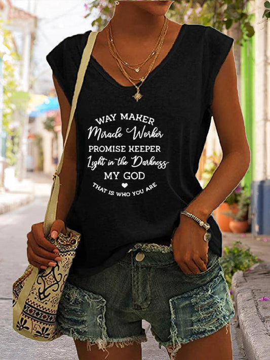 Way Maker Miracle Worker Promise Keeper Cap Sleeve T-Shirt