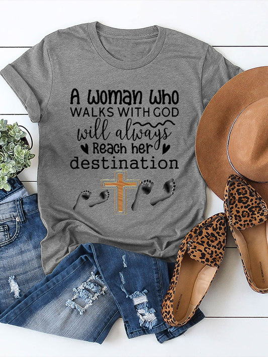 A Woman Who Walks With God Will Always Reach Her Destination Crew Neck T-shirt