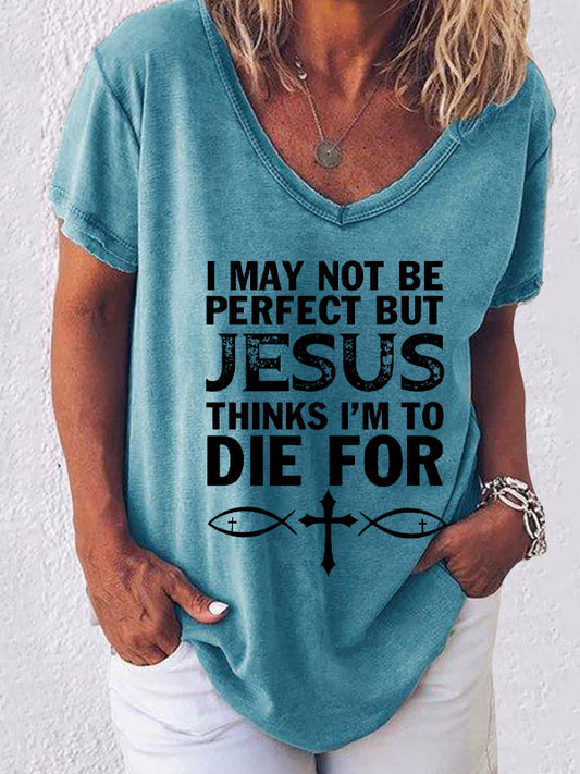 I May Not Be Perfect But Jesus Thinks I'm To Die For V-neck T-shirt