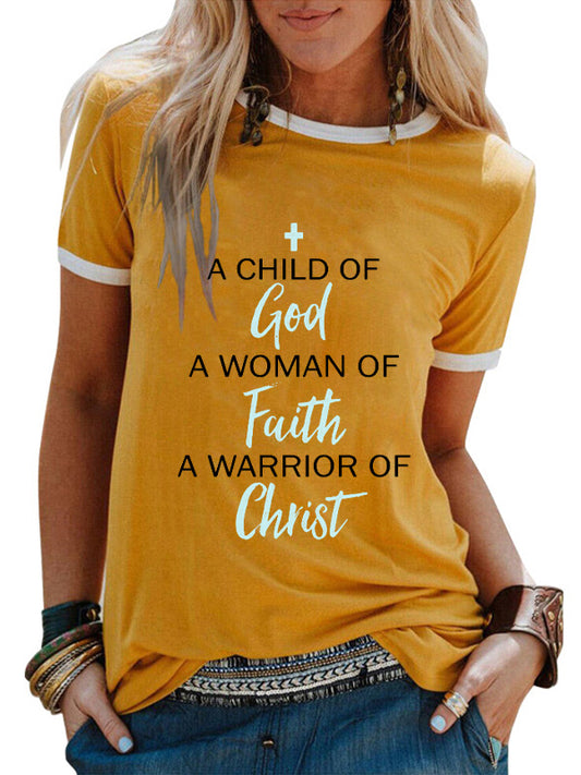 A Child Of God A Woman Of Faith A Warrior Of Chris Crew Neck T-shirt