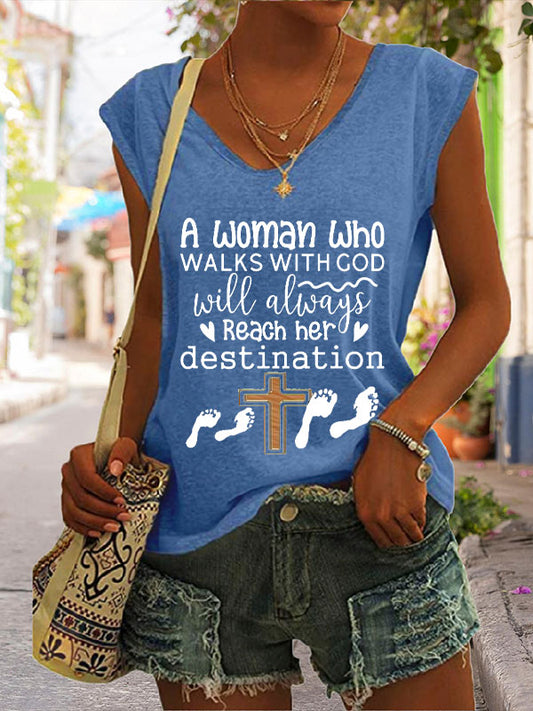 A Woman Who Walks With God Will Always Reach Her Destination Cap Sleeve T-Shirt